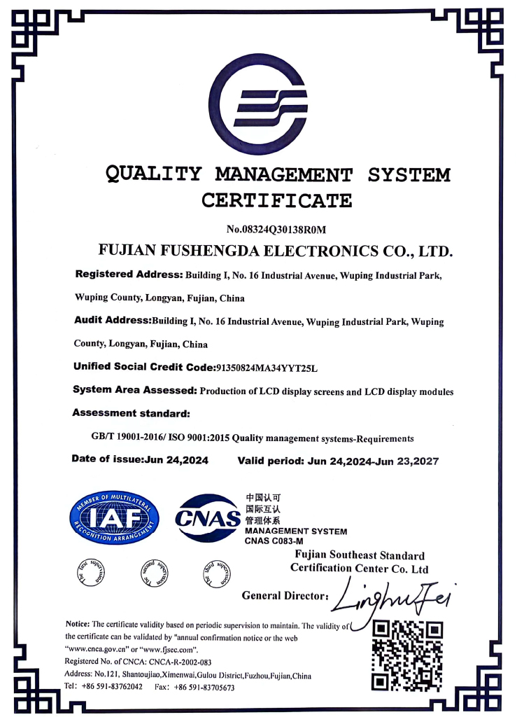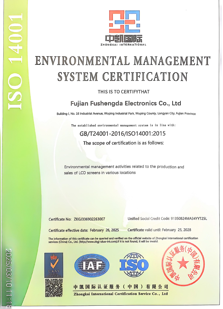 建成两条全自动 LCM 生产线。深圳工厂通过了 ISO9001 和 ISO14001 体系认证。.